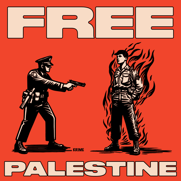 Why the watermelon? “The Palestinian flag, colored in the Pan-Arab colors of red, green, white and black, has historically been banned at times in Israel, leading to the locally-grown and similarly-colored watermelon taking its place in Palestinian iconography as an alternative for decades” (Wikipedia).